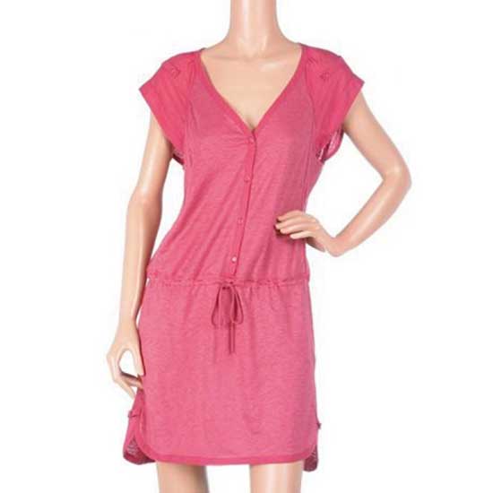 Featured is a ladies' tunic with an elegant design. The tunic features a V-neck, which is finished up with a button-up front and an elastic waistline. The pair of dolman sleeves offers a loose fit. This tunic can be paired with leggings for a casual outfit or with tights for a special occasion.