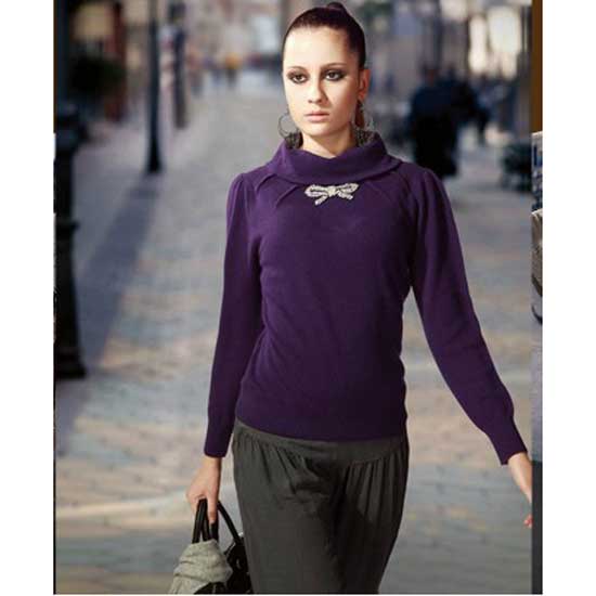 This ladies' purple tunic features a turn-down collar accented with an elegant white bow. The top-quality tunic is lightweight and comfortable to wear. Update your personal style with this fashionable tunic.