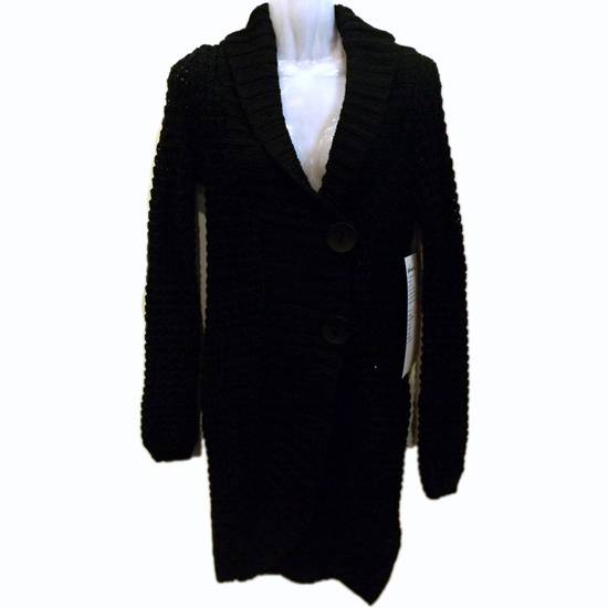 The ladies' sweater flaunts a V-neck and long-sleeve design. It comes with two round buttons and a snap button. This plain color sweater is easy to mix and match with different items.