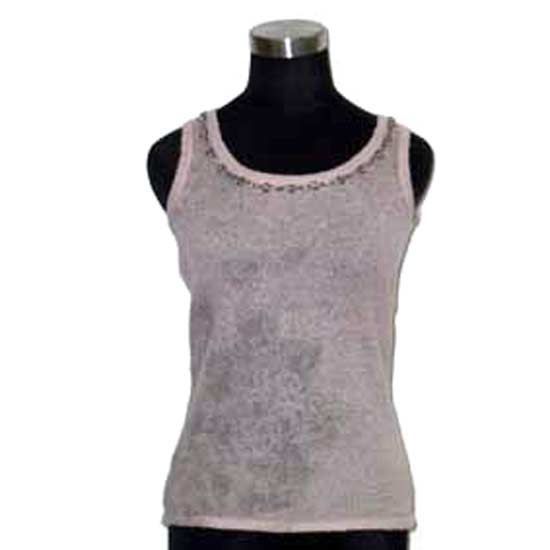 The ladies' vest comes with a round-neck design. The neckline has beaded decoration for added style. This vest is ideal for matching with blouses or knitted cardigans.