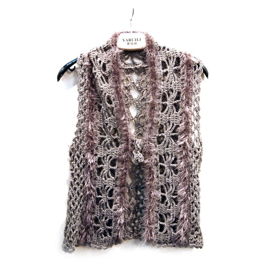 This ladies' vest features supplicated crotchet details throughout the whole piece. It is adorned with fluffy fur trimming for added appeal. Add a exotic touch to your ensemble with this chic vest.