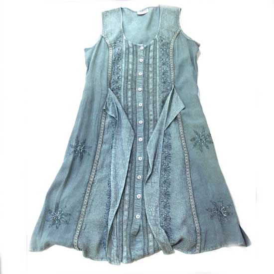 The ladies dress features a loose cut for a comfortable fit. The delicate embroidery with the button and pleated accents brings a touch of uniqueness. Add this beautiful dress to your summer wardrobe.