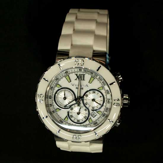 This ladies' watch comes with fashionable rubber straps in white. The stainless steel casing has a shiny surface for added elegance. The Roman numeral markers are attractive and easy to read.