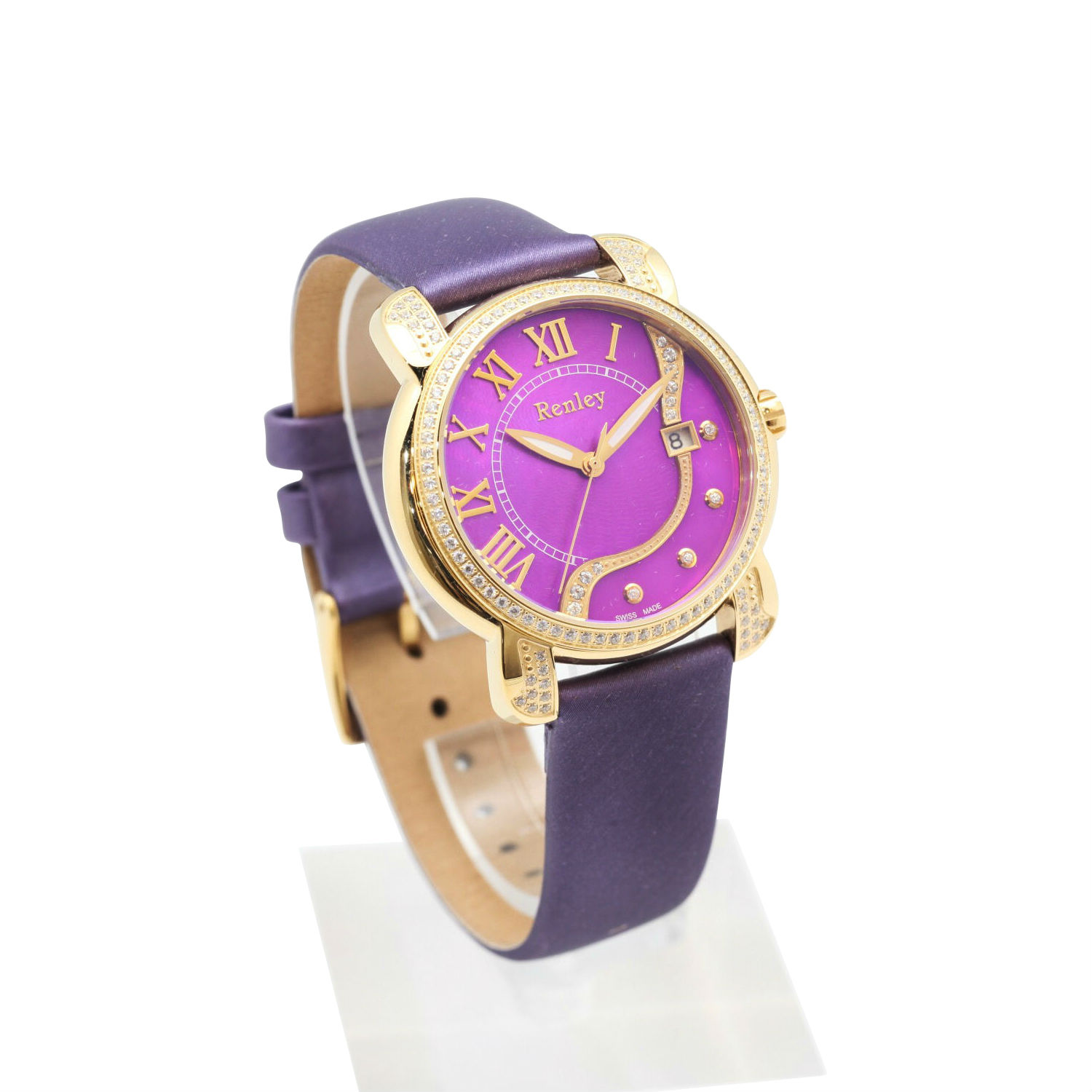 - Set with 108pcs CZ stones on the bezel, lugs and face.