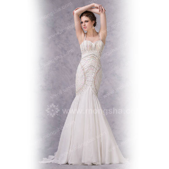 The mermaid wedding gown is feminine and elegant. It features a sweetheart neckline and a flared hem. It looks even more gorgeous and eye-catching with the shimmery embellishments and is designed for the perfect look for your big day.