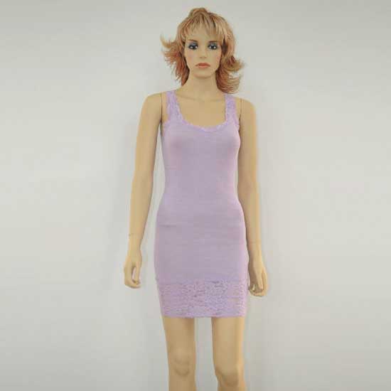 This ladies’ sleeveless dress features a purple-toned appearance for a touch of uniqueness. It comes with frills on the straps and translucent details at the hem. This ladies’ dress is delicately fabricated from easy-to-care merino wool and silk for a comfortable wearing experience.