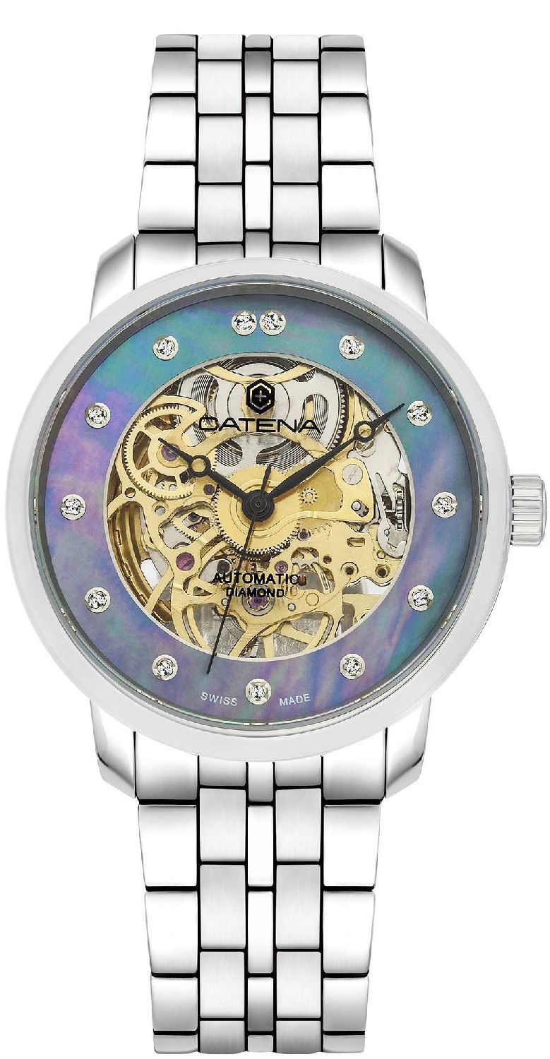 This luxurious automatic watch showcases a posh design to boast great class. On the round case presents a pearlescent MOP dial rim set with 13 glittering round diamonds along to shine exceptional brilliance, while under the Breguet hands reveals the intricate automatic Swiss movement. Wound automatically with the motion of the wearer's wrist, this watch is a well-engineered and interesting piece that remains its value over time.