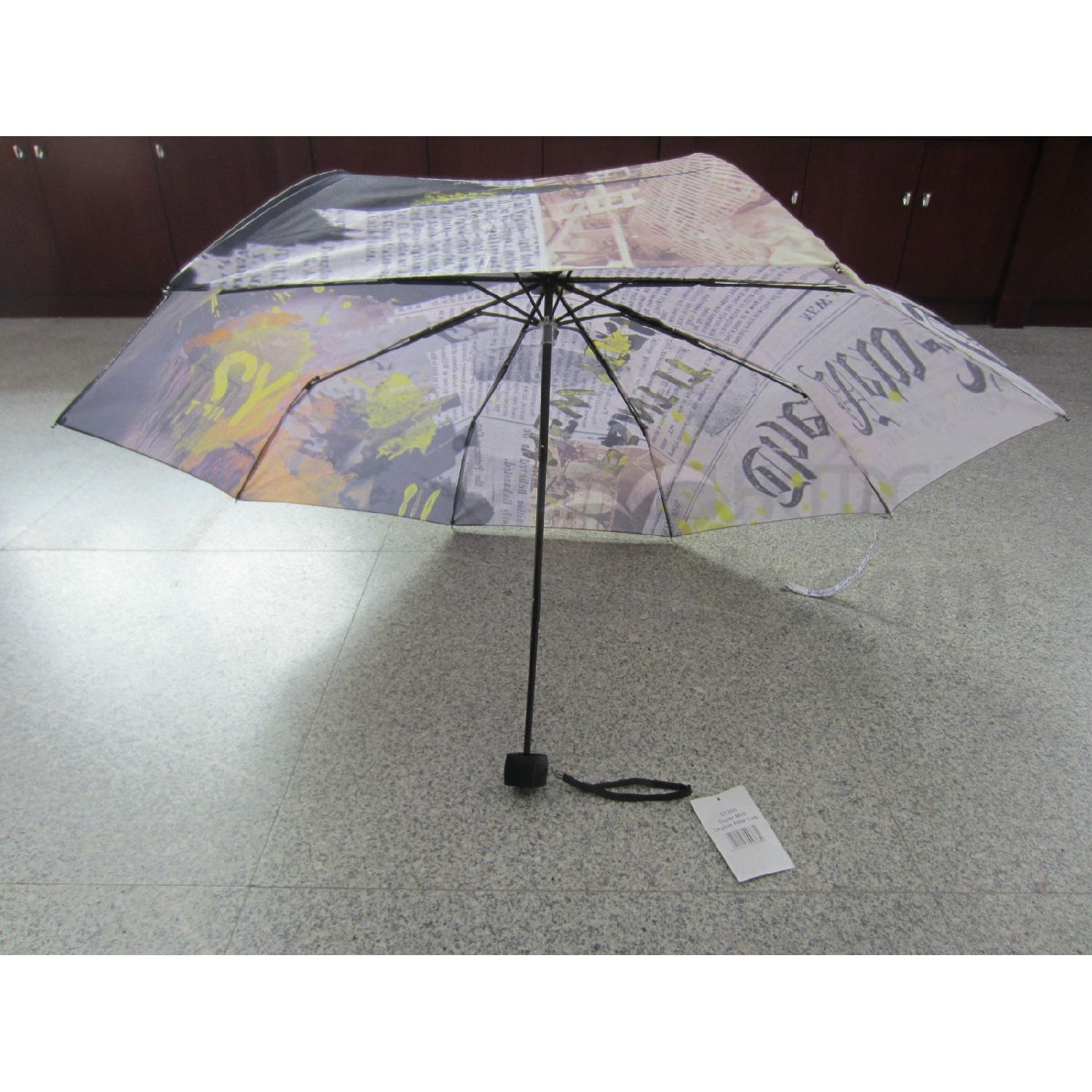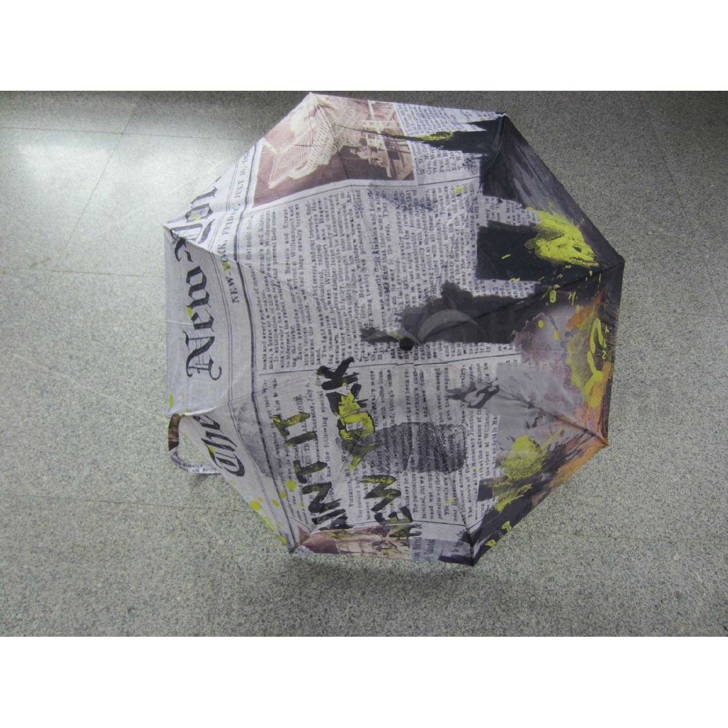21''x8ribs, heat transfer printed pongee fabric, metal shaft and ribs, rubberized handle.