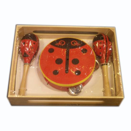 This toy musical instrument set comes with toy maracas and a tambourine. It has a ladybug design. It is suitable for developing children's interest in music.