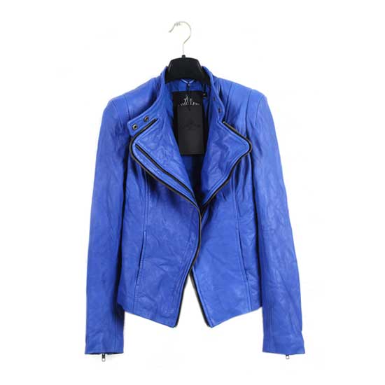 This blue lambskin jacket comes with a fashionable appearance. The finely manufactured jacket delivers satisfying wearing comfort. The high-quality jacket keeps your warm during cold seasons.
