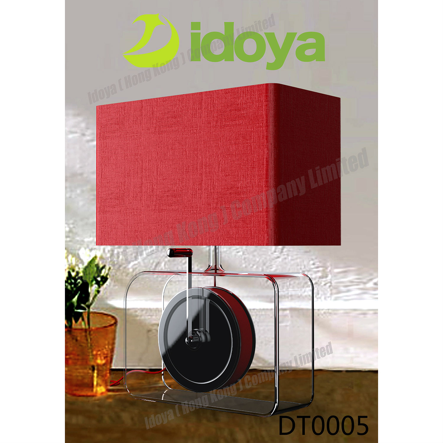 Improve the lighting condition with this effective lamp. This lamp comes with a bright red light shade and a transparent base for a modern finish. The length of wire can be adjusted with a handle according to users' needs. Graceful and stylish, this high-class lamp is a perfect item for home decoration.