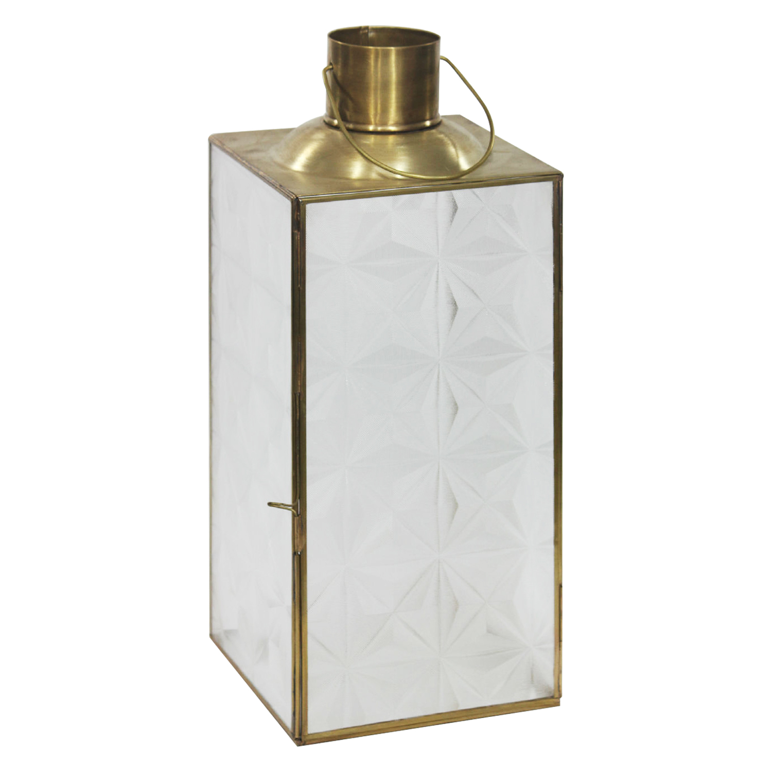 Create a warm and inviting atmosphere inside your bedroom with this lantern. Fashioned to a standard of perfection with a stainless steel frame, the sleek and glossy lantern features a finely polished glass shade with rhombus patterns crafted on it to lend a cozy accent to the soft glimmers of the candlelight.