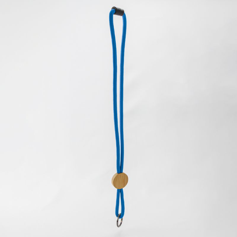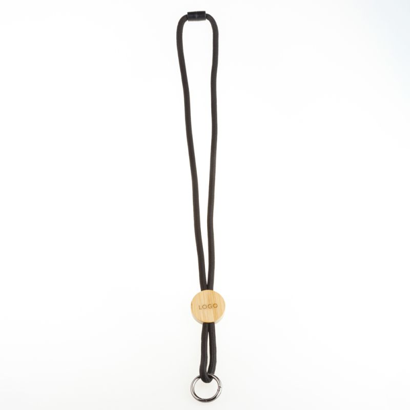 Size Lanyard: 450 × 5 × 5 mm Size wooden slider: Ø 38 mm × 10 mm