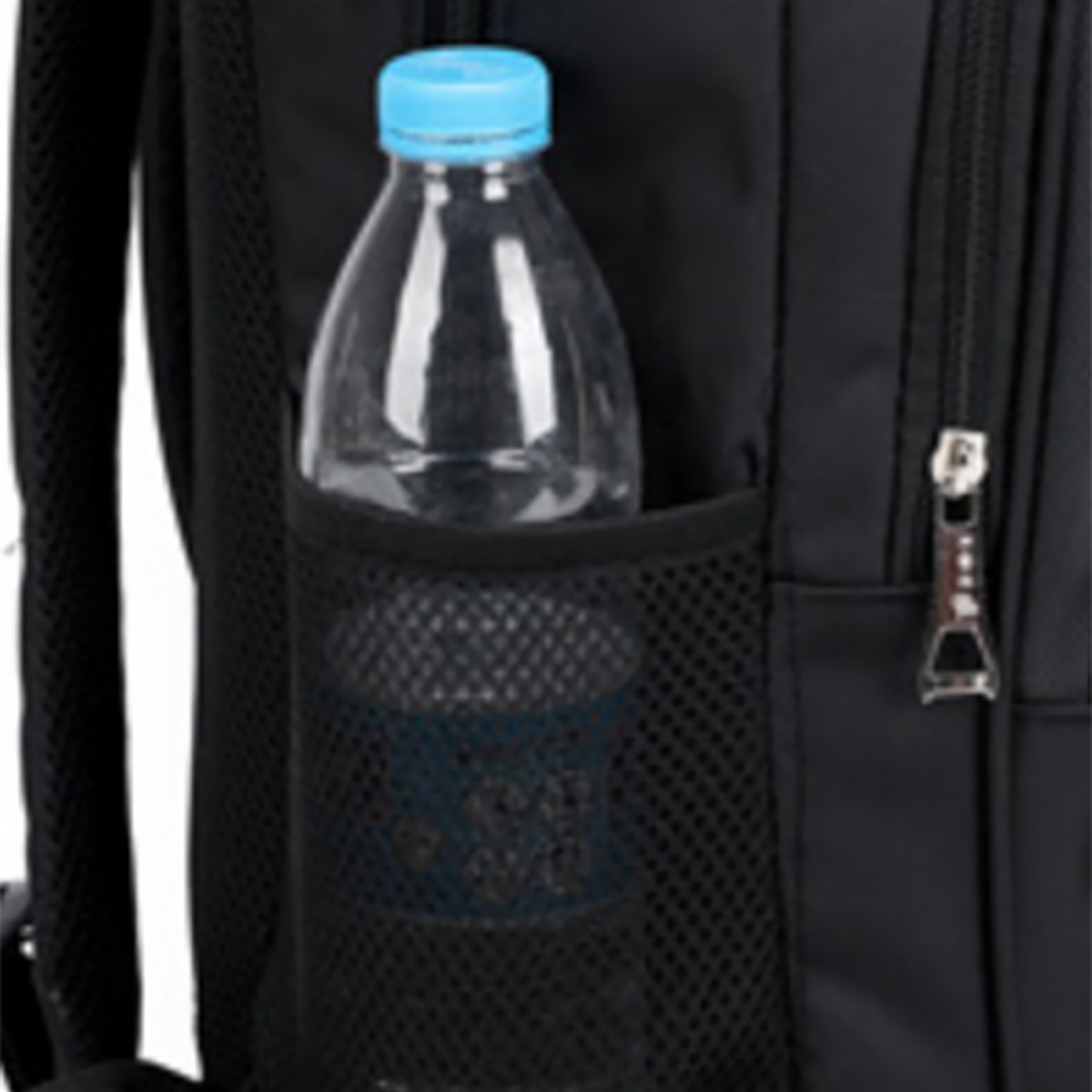 - Mesh pocket for a water bottle.