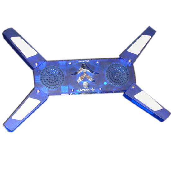 This is a laptop cooling pad which is rechargeable by connecting to USB port or adapter. It is equipped with a fan and 2 stereo speakers.