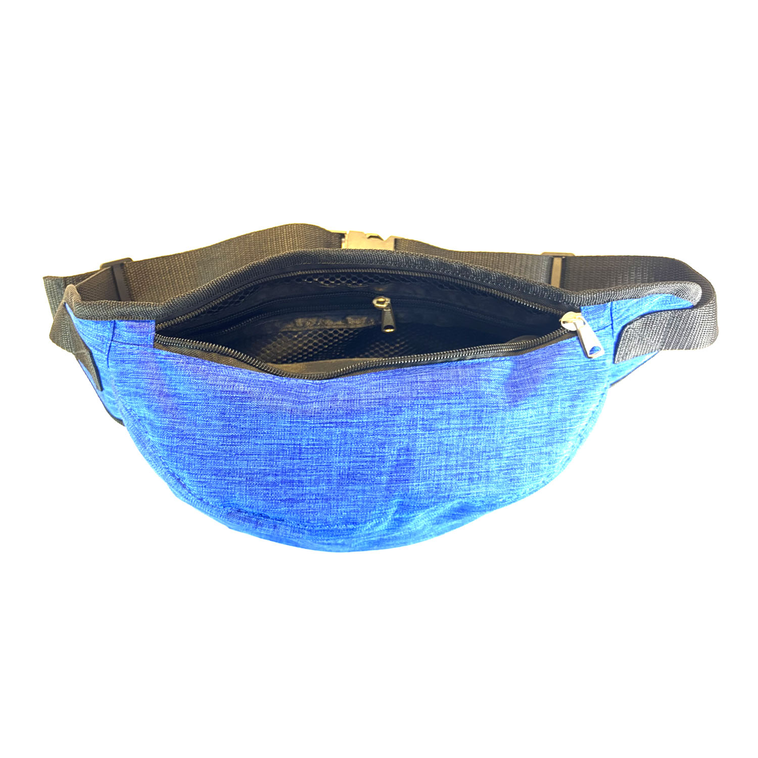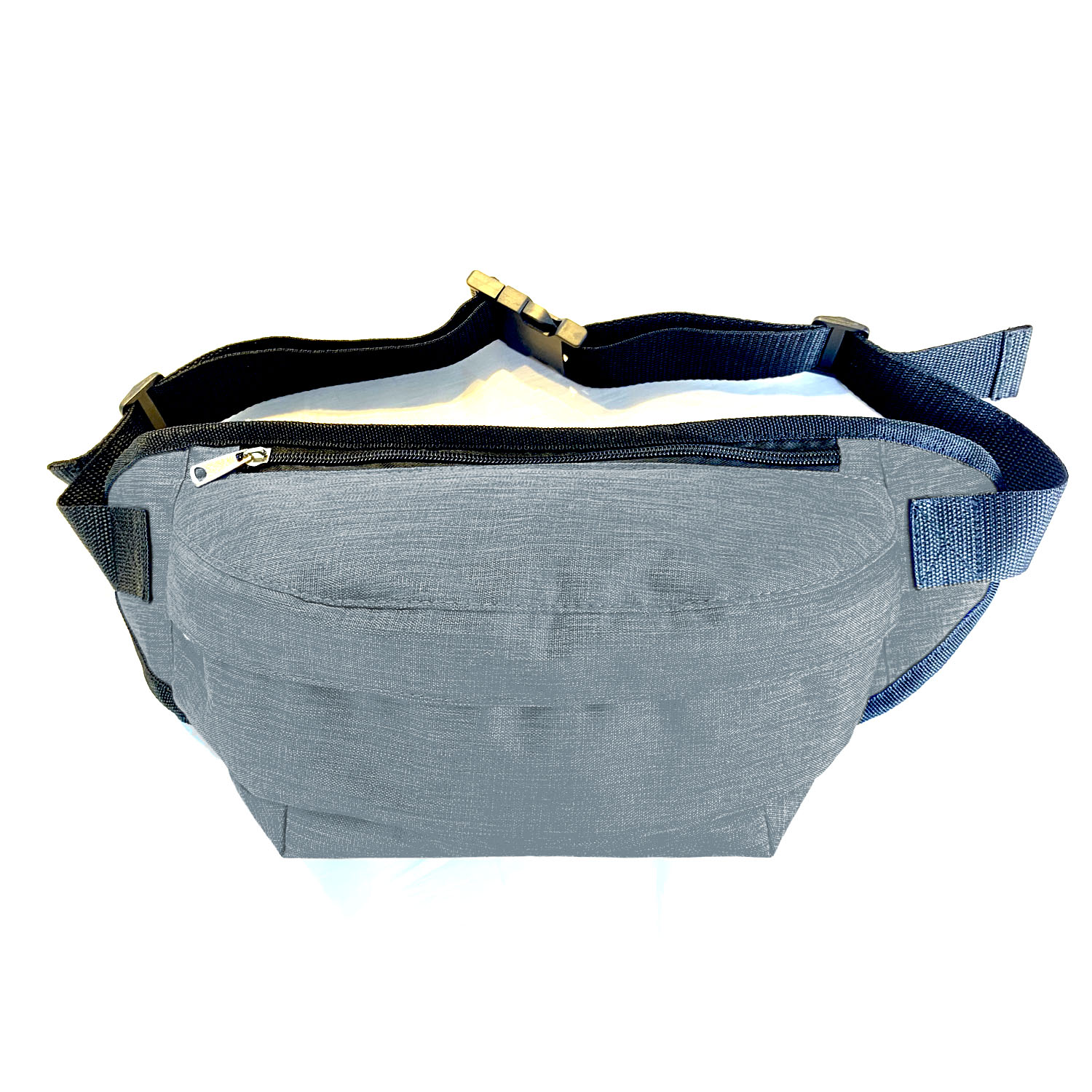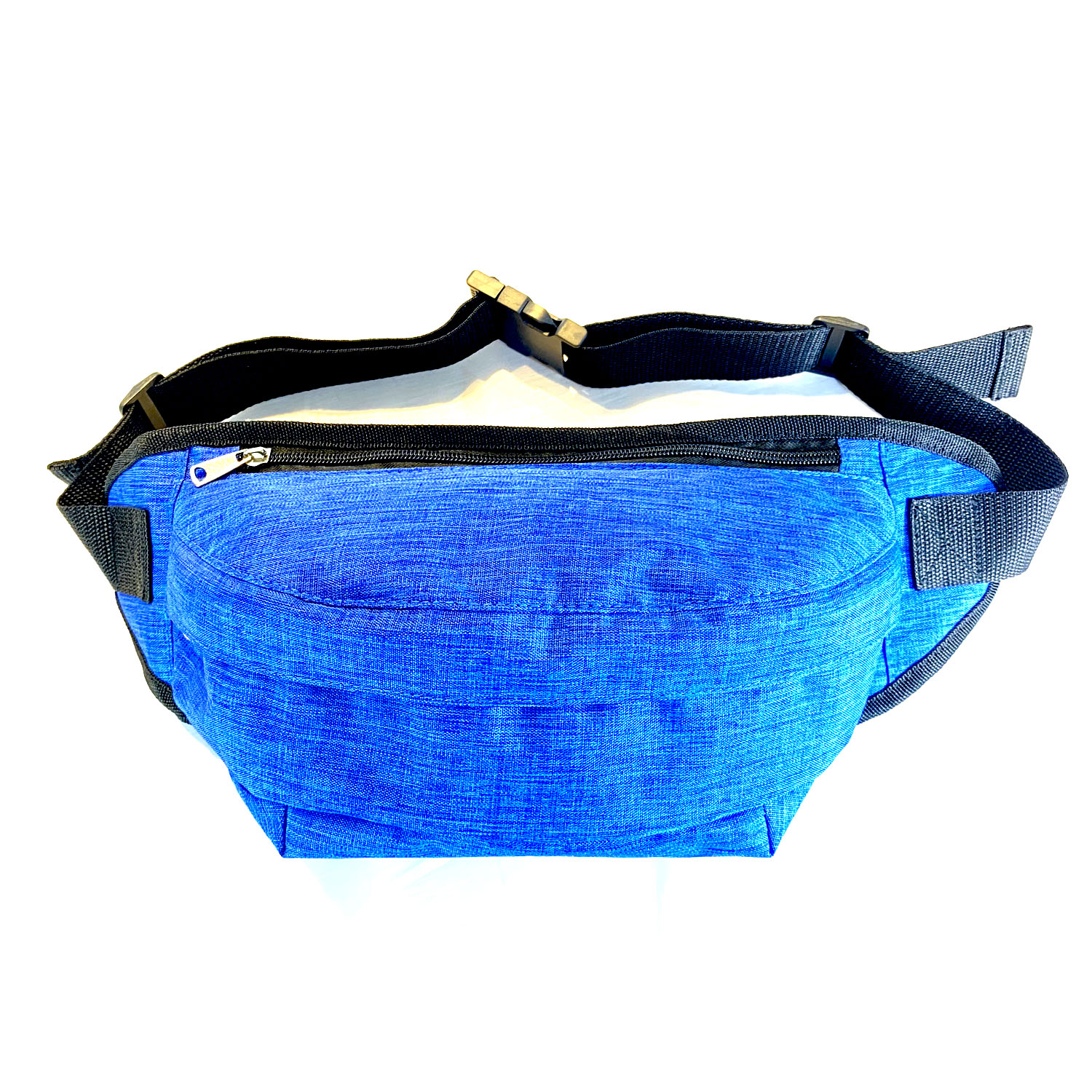 Made of heather 300D polyester, with a main compartments and a zipper front pocket, with zipper mesh pocket inside, with wide and long belt