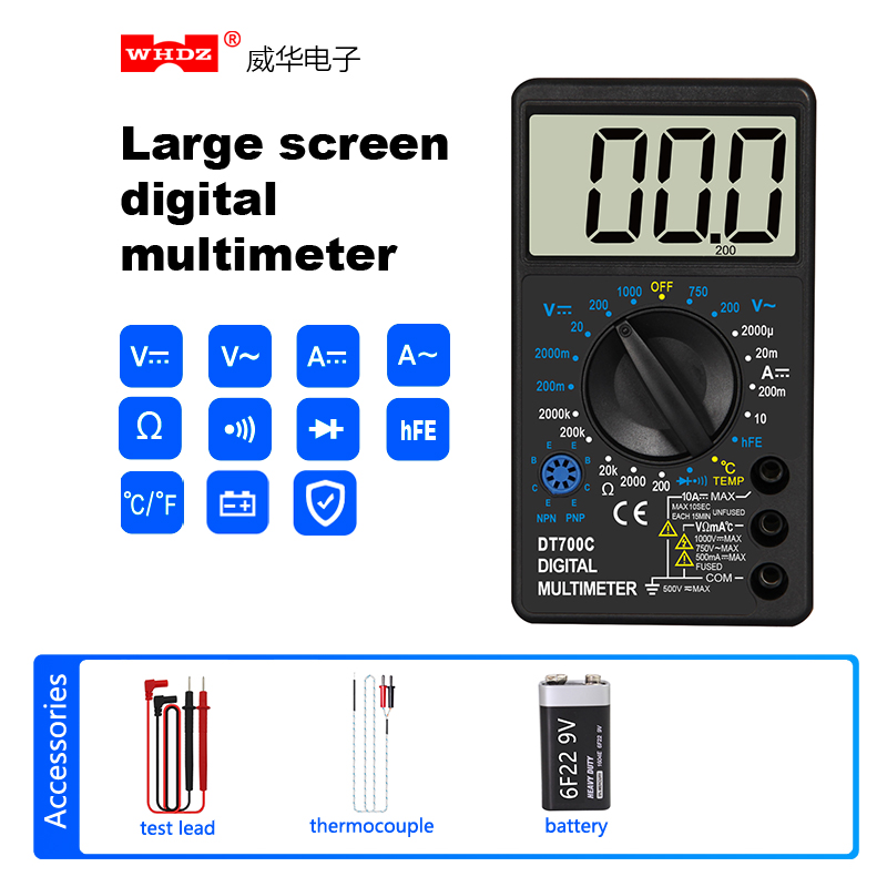 Large Screen Digital Multimeter With Temperature Test DT700C