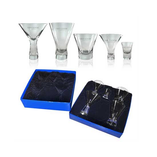 This is a collection of laser glasses that comes in assorted sizes. With a laser logo, these glasses are great for restaurants and bars. These laser glasses are comfortable to hold.