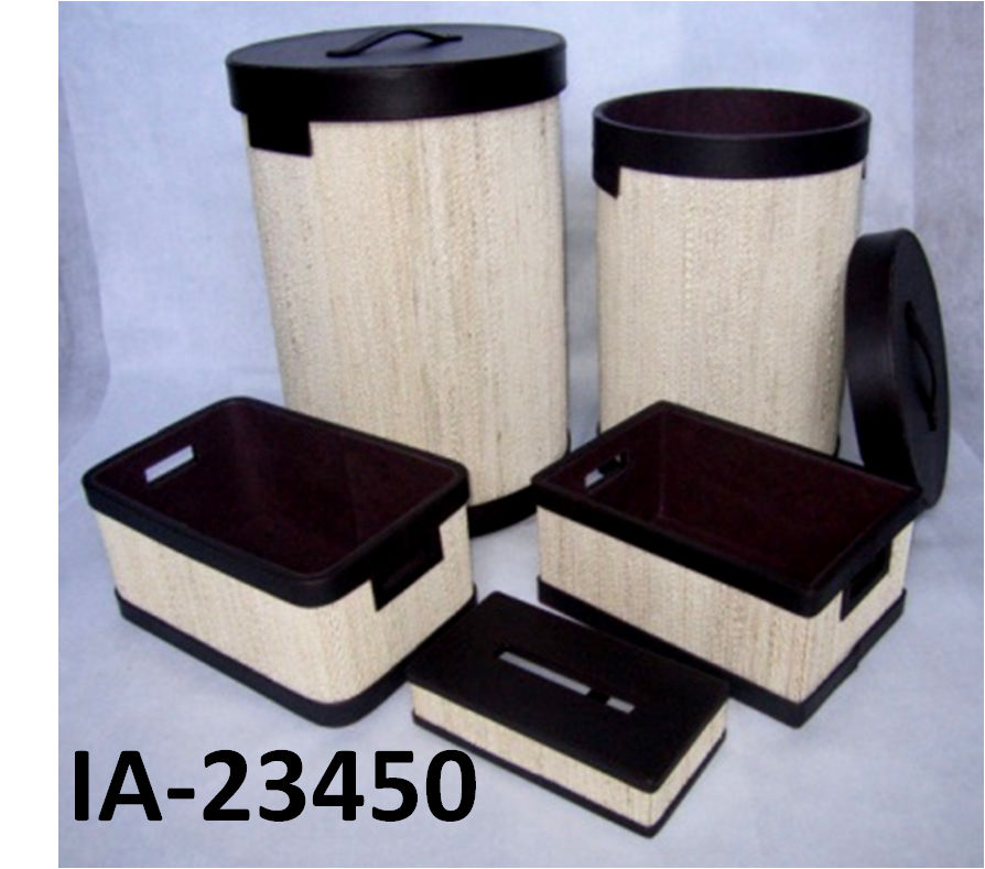 This product comes with a stylish and elegant design. It is made of quality materials. This product comes with two laundry hampers with cover and handle, two rectangular storage box with handles and one rectangular tissue box. This is ideal for household use.