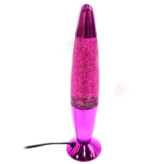 Pictured is a lava lamp that gives a romantic and stylish pink. The lamp is built with glass for a look of elegance and high durability. This lamp makes a great addition to your home décor.
