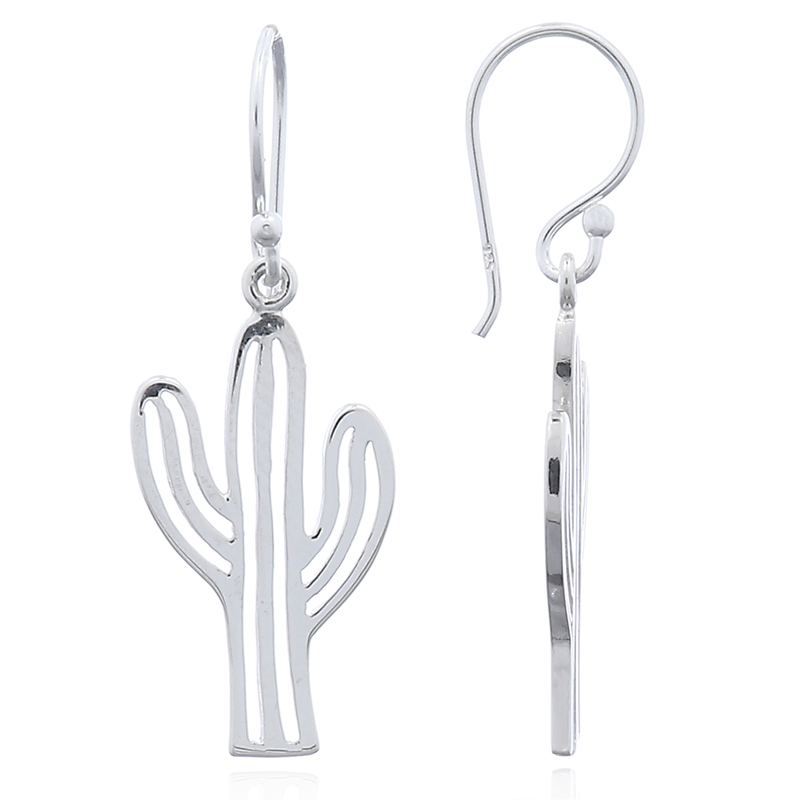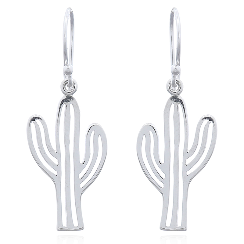 Layered Saguaro Cactus 925 Silver Dangle Earrings