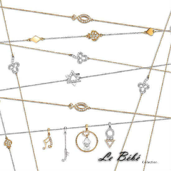 Le Bebe jewellry collection, bracelet, hand chain, baby shape, star shape, diamond.