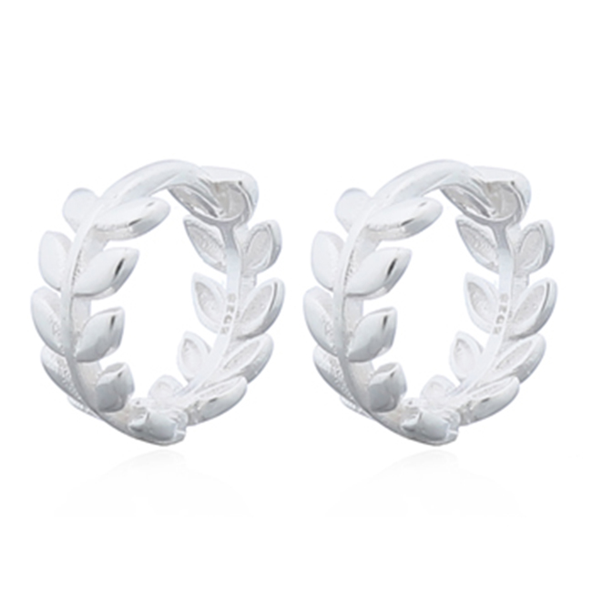 Leafy Rounded Circle Huggie Silver Hoop Earrings