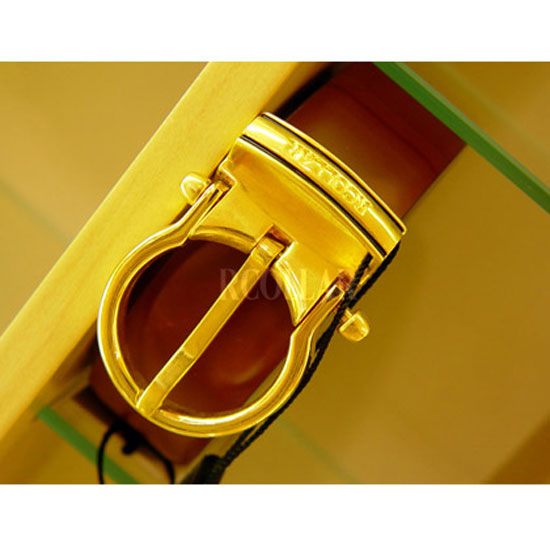The belt here flaunts an elegant design to appeal to modern gentlemen. The belt is made of genuine leather for a lustrous touch. The metal buckle is plated in a glittering golden color to show enhanced style.
