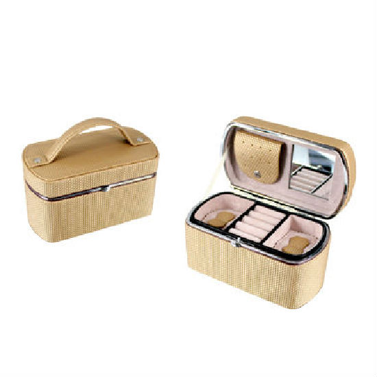 The highlighted box is great for storing and displaying jewelry. It has a rounded rectangular body and offers multiple compartments for storage. The handle on top makes this box easy to carry around.