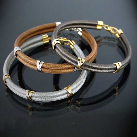 This series of bracelets are carefully made with eco-leather in black, coffee or silver. The bracelets are classy enough to fit both men and women. The occasional use of 18K gold or 925 silver adds value and charm to the bracelets.