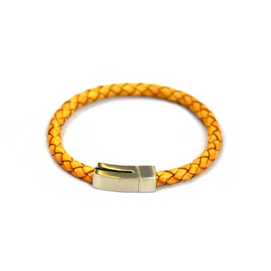 This is a braided bracelet with a neat and dainty design. It is made of quality leather material in bright orange. The bracelet comes with a magnetic metal clasp for a perfect finish.