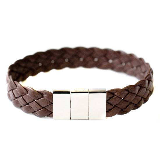 This leather braided bangle features beautiful leather braided strap and a shiny clasp in silver color. It has braid had 13mm wide. The bandlge has 19cm to 21cm in length.