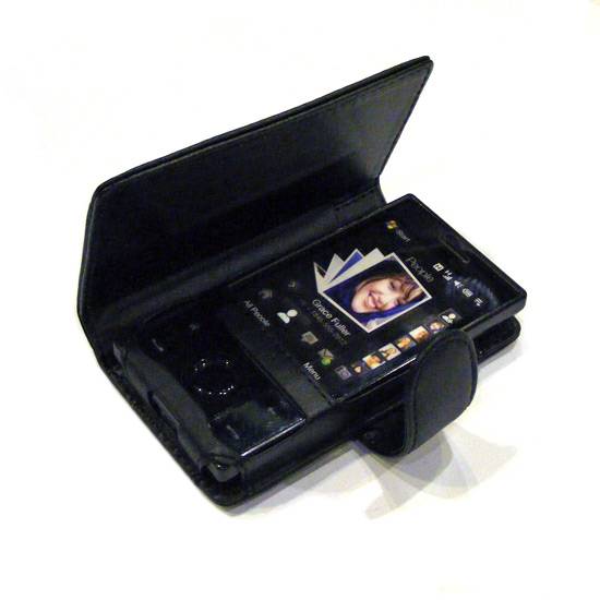 This is a leather case for mobile phones and iPod player. The leather case is made of fine black leather. The strap has a magnetic stud to keep the mobile phone in place. Various tones can be chosen to match the colour of your mobile phone. This is a perfect accessory for your mobile phones.