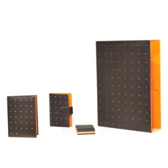 - The leather set includes: a travel organizer, a name card holder and a wallet
