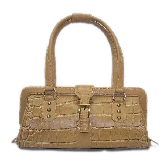 Displayed is a handbag made to fit the ladies’ latest fashion trend. The handbag is made of genuine leather for added attractiveness. The embossed crocodile skin texture enhances the bag’s style.
