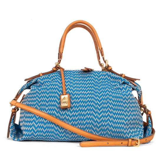 This is a leather handbag with a classic and elegant design. It features a cotton lined interior with an internal zip pocket and an internal pocket for miscellanies. The bag comes in blue with white patterns for a touch of uniqueness.
