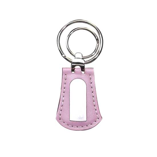 As shown is a leather key chain with a flared design. The soft texture boasts a sturdy shape without distortion. The arch-like badge is ready for hot stamping or embossing of customized logos. Make a lasting impression with this dainty leather keychain.