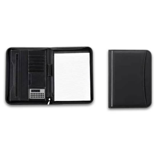 The leather portfolio is in two fold design. It has fold pocket compartment. It has a built-in 8-digital calculator.