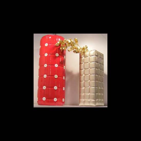 The vases are padded in even squares with a high gloss finish