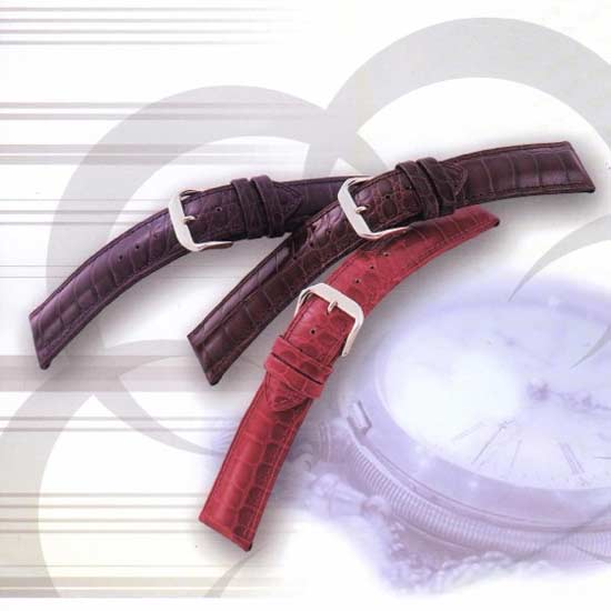 Highlighted is a pair of elegant watch bands that is crafted of leather material. Each excellent watch band is adorned by a textured surface design. These beautiful watch bands are the definitive components for stylish wrist watches.