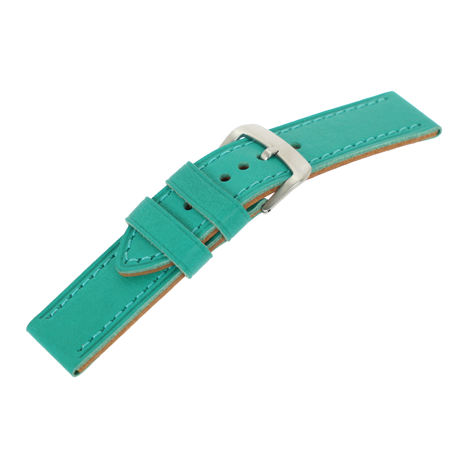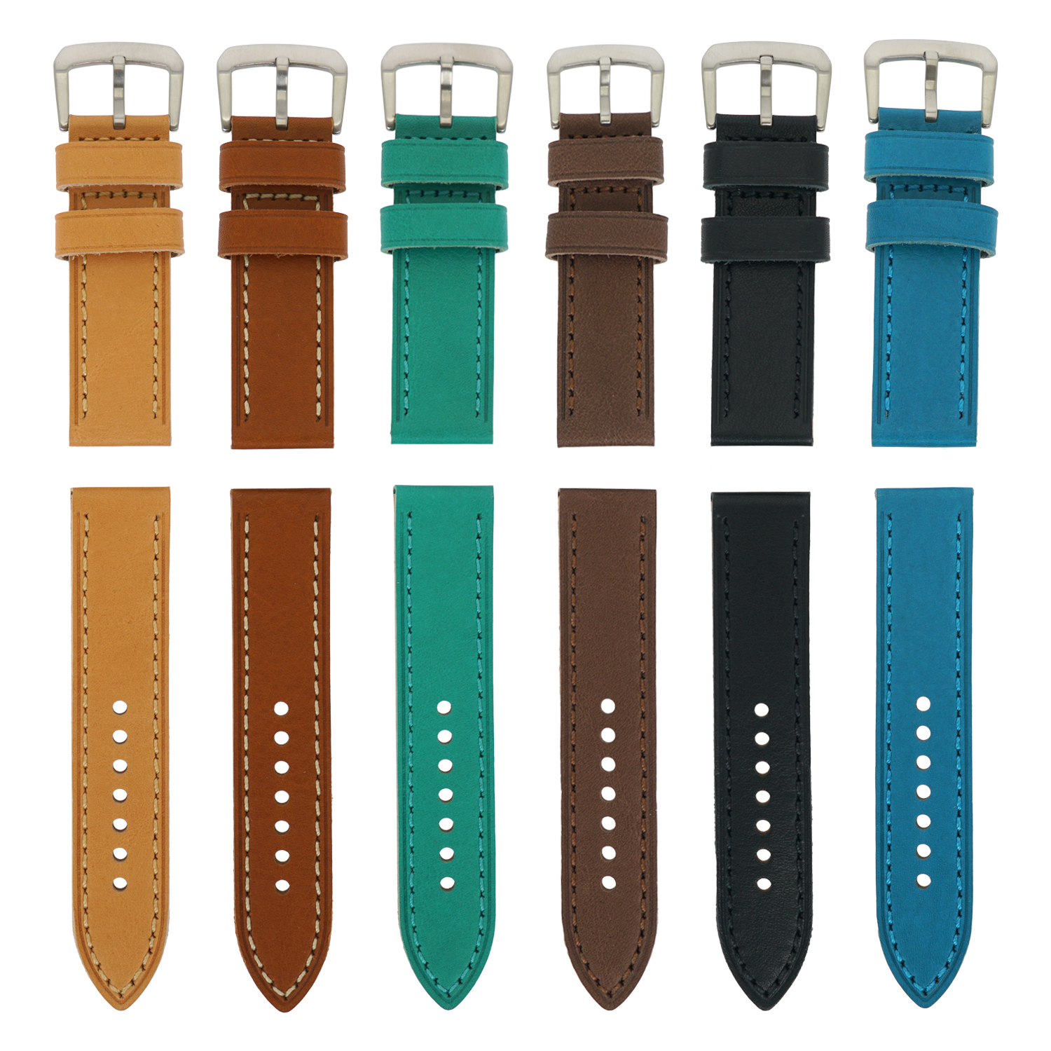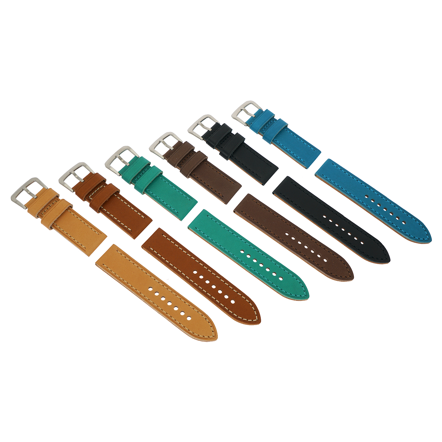 This classic leather watch strap has a distinctive texture with minimalist stitching detail. Made of vegetable-tanned leather, this watch strap with high-quality construction is soft and flexible for long-lasting durability and comfort. The polished stainless-steel buckle and the loop for keeping any excess strap in place and completing the look.