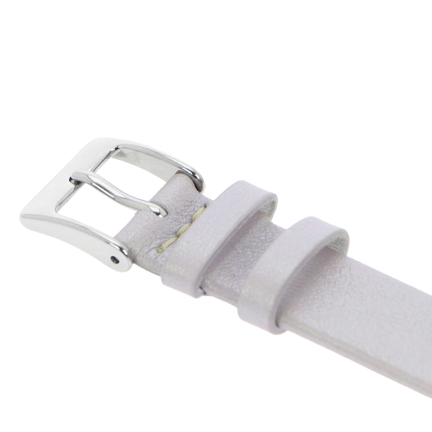 Bring a graceful air to your new watch designs by getting this watch strap. Finely crafted in top-quality Italian calf leather, this watch strap comes in a pearl finish for a refined and delicate look. To lend the piece some extra details, light-colored stitches are employed on the sides. Completed with a luminous and streamlined stainless steel buckle, this piece is modern and delicate, perfect for watches with a feminine or elegant design.