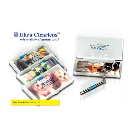 This is a lens cleaning kit that comes with a microfiber cleaning cloth and a screwdriver. The cleaning cloth is made by full color digital printing for a fashionable look. All items are organized in a compact case for portability.