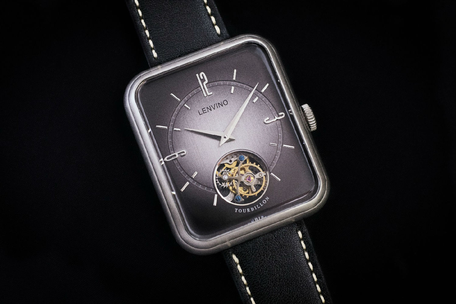 Give some accent to your wrist with this Tourbillon wristwatch to spice up your everyday style. Housed in a rectangular case, this tourbillon wristwatch is powered by automatic movement for reliable time indication. The watch strap exquisitely crafted with genuine leather furthers lends a classy touch to the piece.