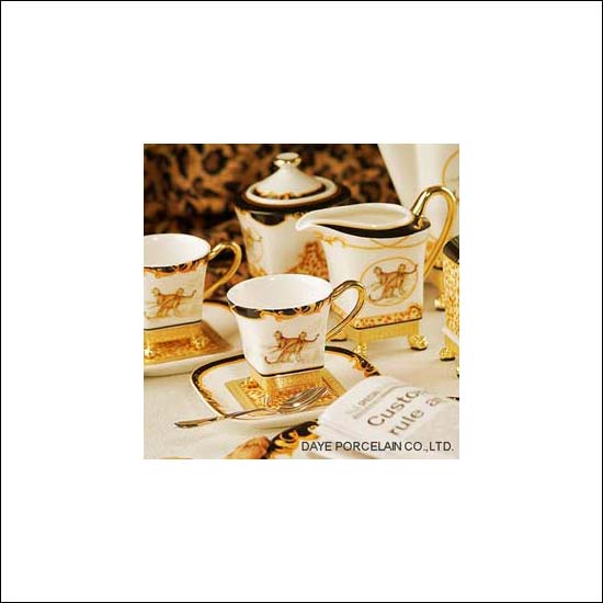- An antique design with a classical style featuring a set of coffee cups and sugar bowl, creamer and more