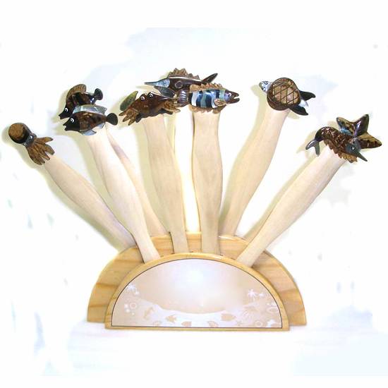 This series of sea life collection letter opener is made of wooden material combining resin coco and shell. The openers are designed in sea lives like fish and turtles. The little tool is useful and is perfect as little gifts in any occasion.