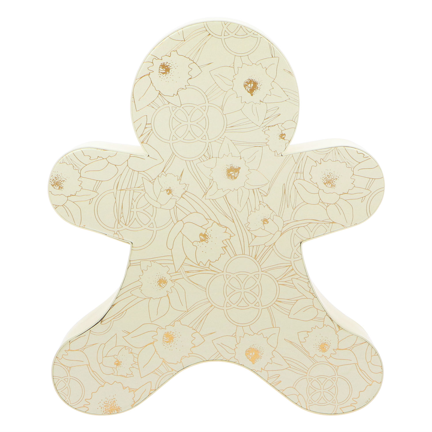 - A gift box in a shape that mirrors the silhouette of a gingerbread man.