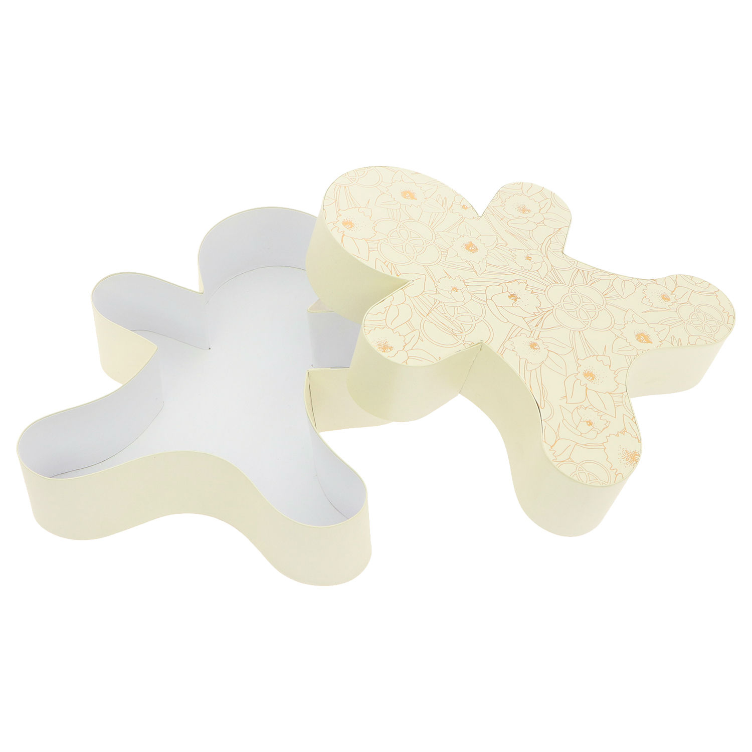 Get into the holiday spirit with this lovely lid top gift box. This gift box comes in a unique and cute shape, so it resembles a gingerbread man. Its lid is also accented with an intricate, sheeny pattern for a polished and refined look. Place your homemade chocolate chip cookies or DIY gift in this lovely box and gift it to friends or relatives during the holidays.
