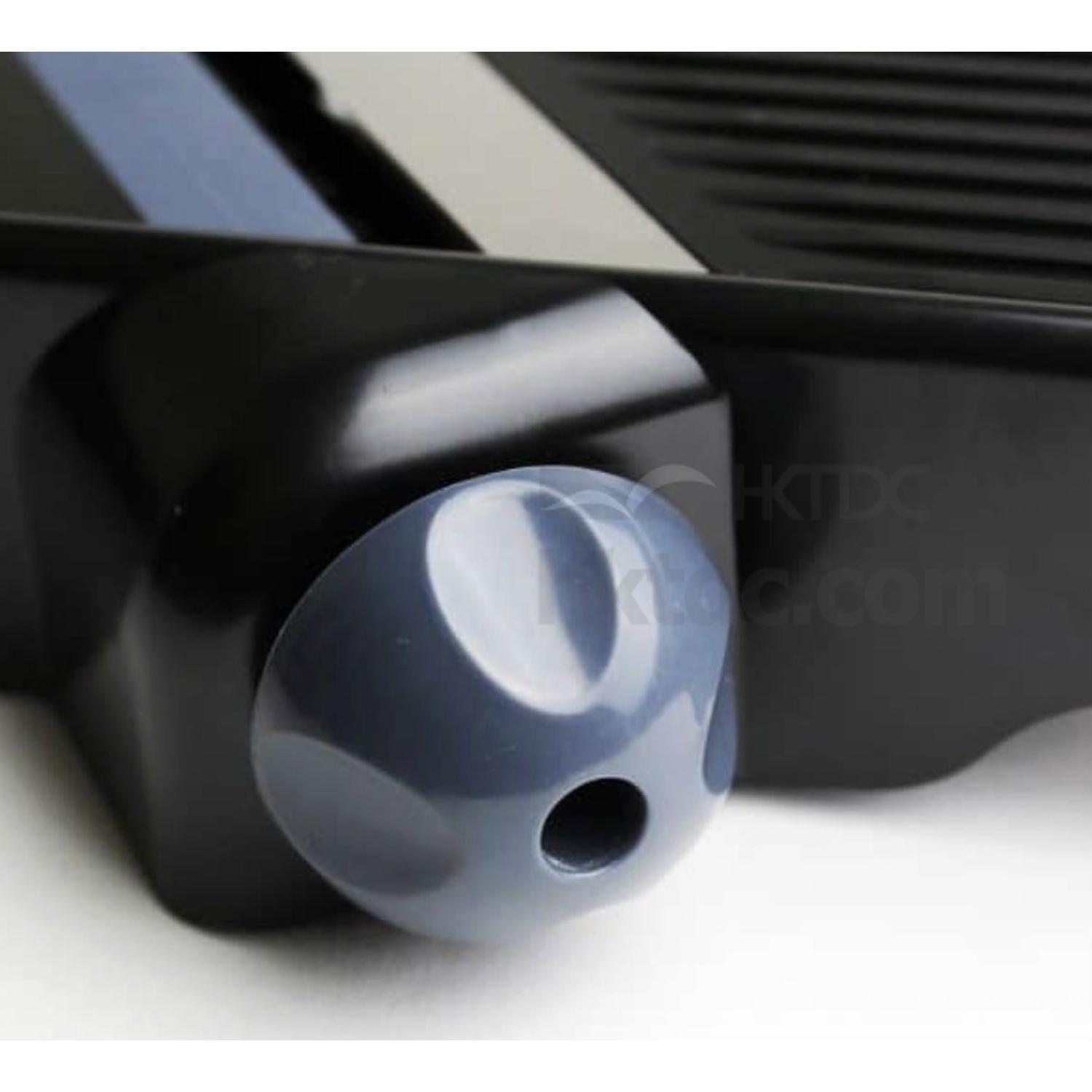 The Lifestyle Mandolin Slicer with 4 interchangeable blades – Thick Slice, Thin Slice, Julienne and Thick Julienne Cut. Quickly turn the blade to any setting you desire.