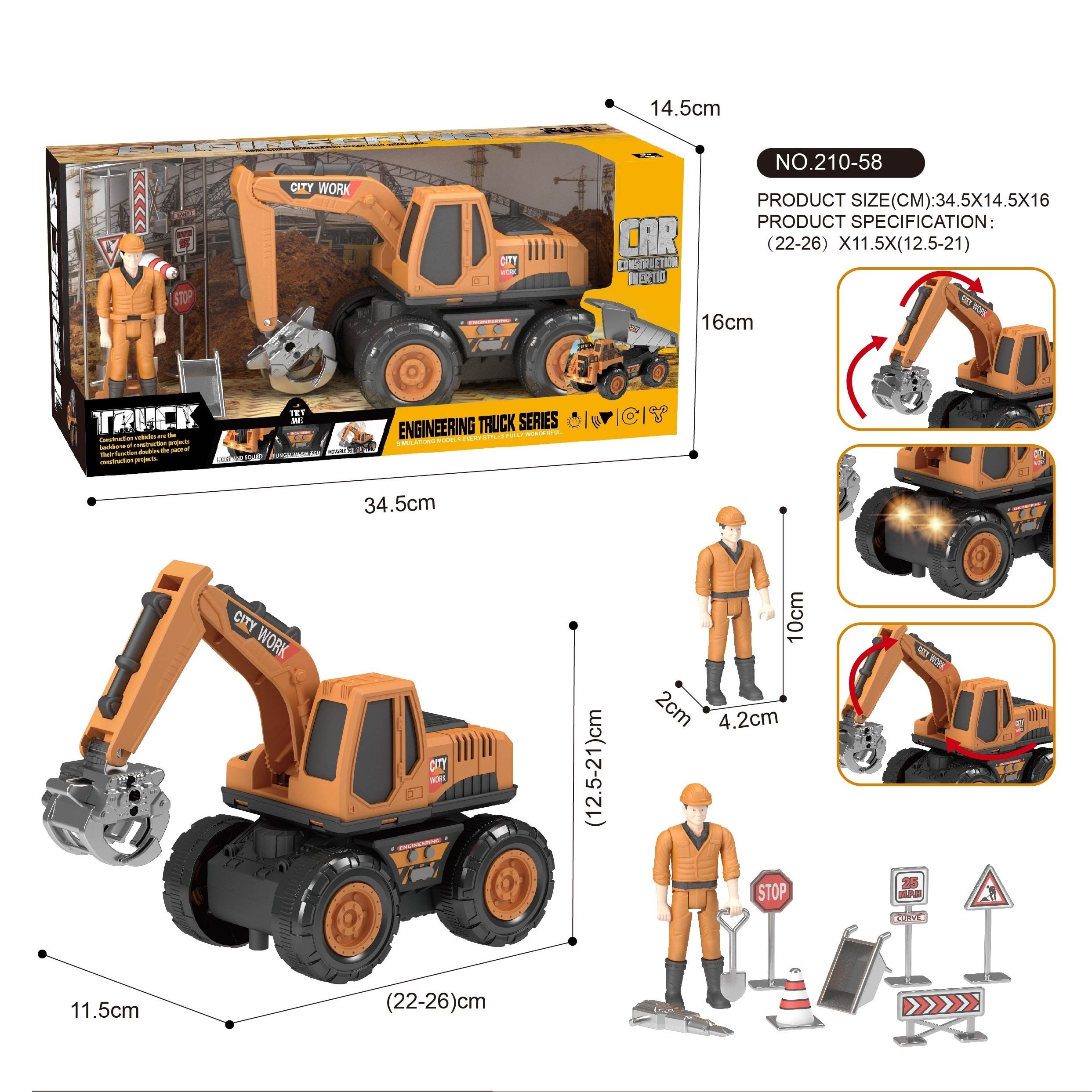 Light inertia music grab wood engineering car - with engineering figures plus road signs